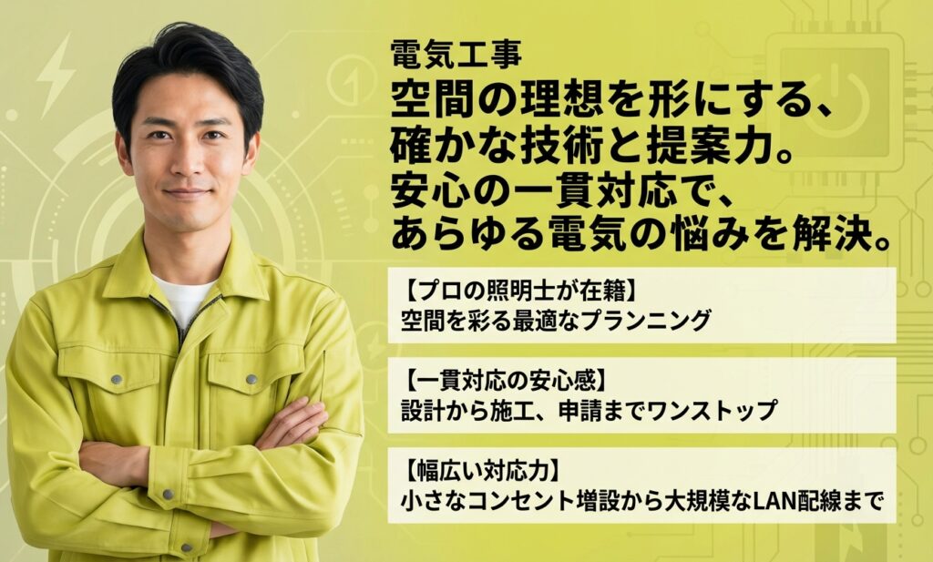 家庭からオフィスまで、電気の困りごとを幅広くカバー