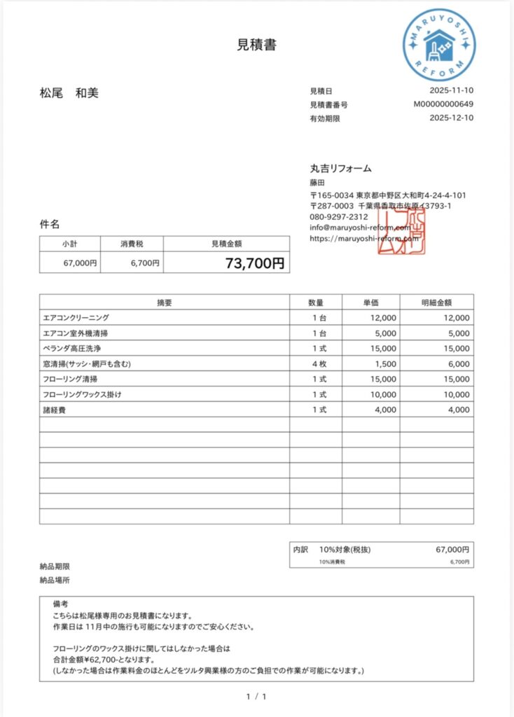 とにかく困っていて電話で相談したら見積もりに来て貰えることになり値段も安くすみそうなのでついでにエアコンの設置も頼みました。 隣人も車も綺麗で整理整頓がきちんとしているからいい仕事してでしょうと言われました。