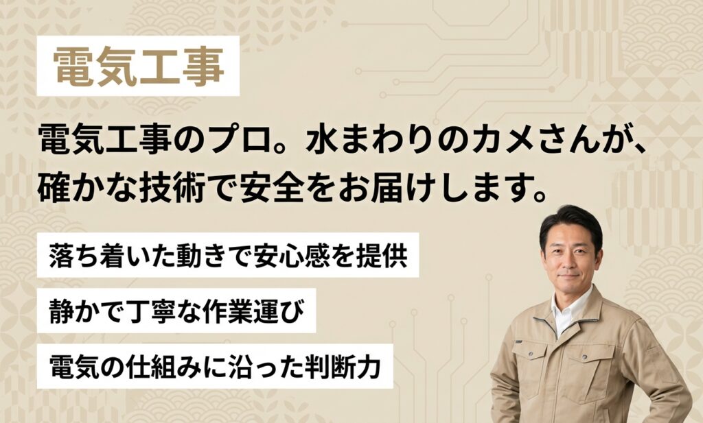照明設置・修理サービスです。家庭やオフィスの照明環境を整え、快適で明るい空間を提供します。プロの技術で安全かつ美しい照明設置を実現。新規設置や交換、故障対応もお任せください。ご依頼の際には、信頼できる業者を選び事前に見積もりを取得し、サービス内容を確認することが重要です。