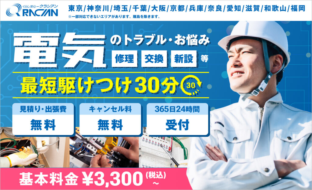 漏電調査・応急処置 | 24,200円(税込)〜 +器具代※原因判明まで(不明の際は頂かない) |