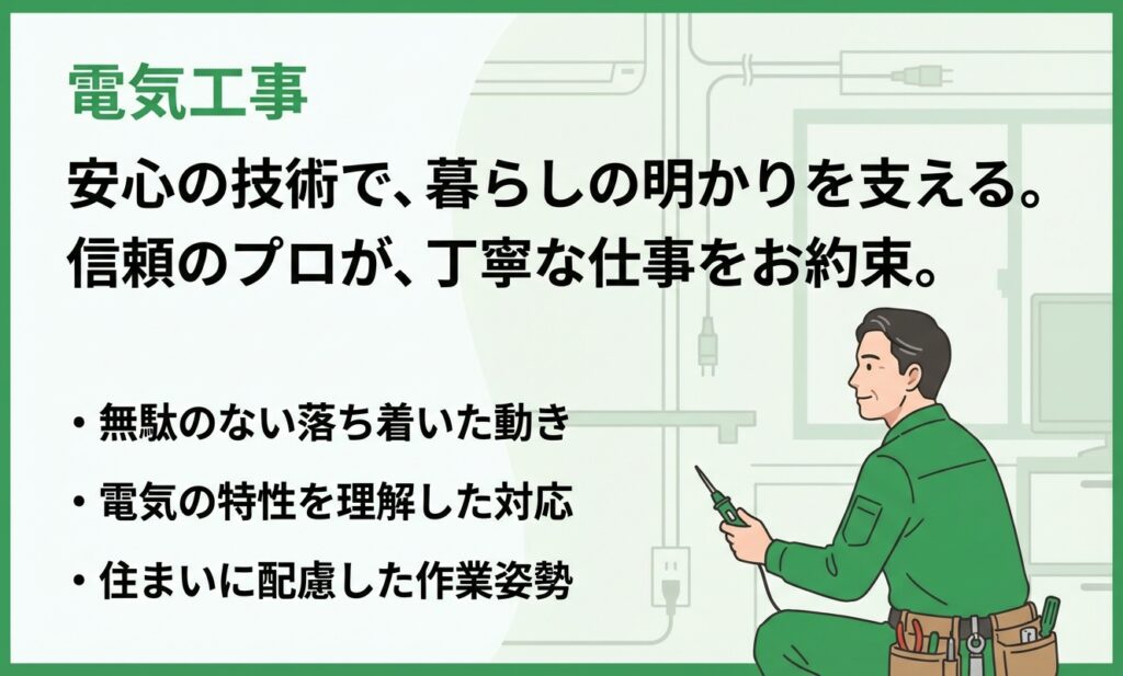 照明設置・修理サービスです。家庭やオフィスの照明環境を整え、快適で明るい空間を提供します。プロの技術で安全かつ美しい照明設置を実現。新規設置や交換、故障対応もお任せください。ご依頼の際には、信頼できる業者を選び事前に見積もりを取得し、サービス内容を確認することが重要です。