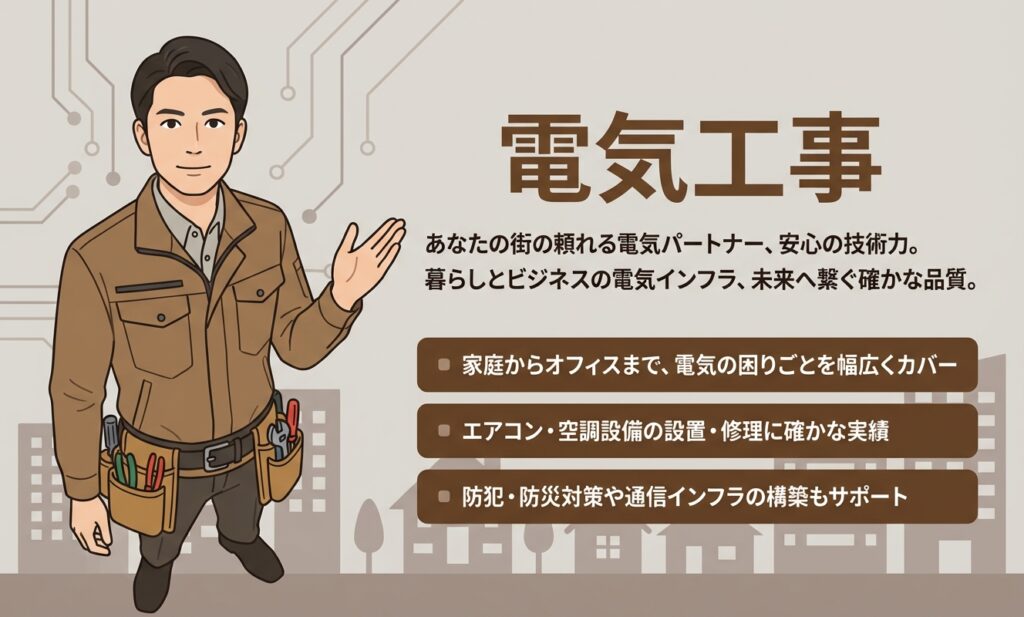 家庭からオフィスまで、電気の困りごとを幅広くカバー