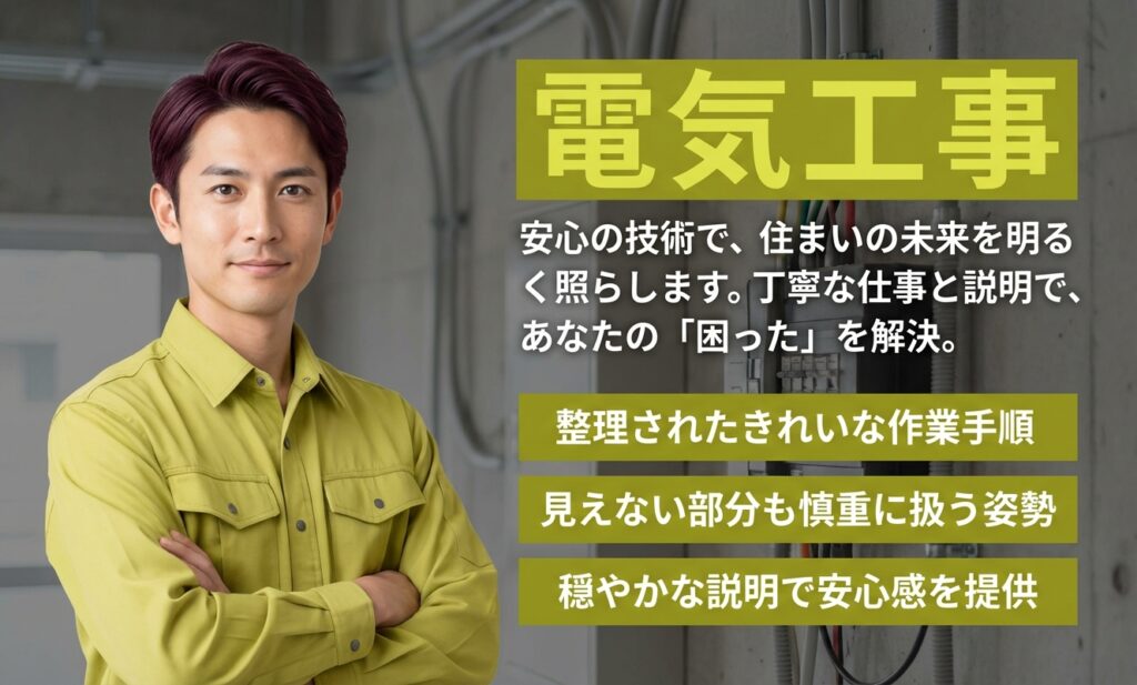 照明設置・修理サービスです。家庭やオフィスの照明環境を整え、快適で明るい空間を提供します。プロの技術で安全かつ美しい照明設置を実現。新規設置や交換、故障対応もお任せください。ご依頼の際には、信頼できる業者を選び事前に見積もりを取得し、サービス内容を確認することが重要です。