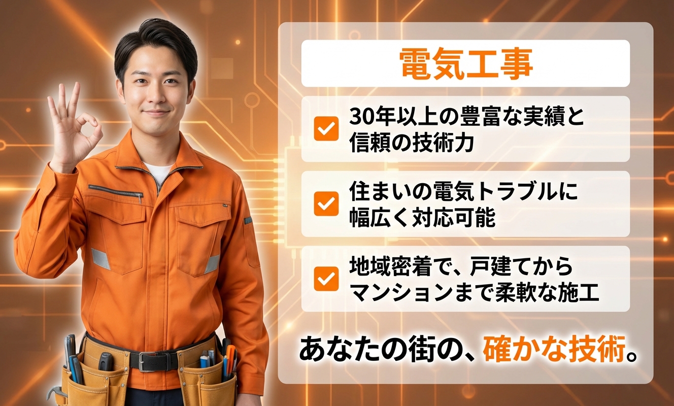 横浜市旭区に本社を構える株式会社コムデンは、30年以上の歴史を誇る電気工事会社です。ベテランの技術者が揃っており、ちょっとした電気の困りごとから、オール電化や太陽光発電といった大規模な設備導入まで相談できるのが強みです。長年の経験に裏打ちされた正確な施工と、地元密着型ならではの安心感があり、初めて電気工事を依頼する方にも自信を持っておすすめできる一社です。
