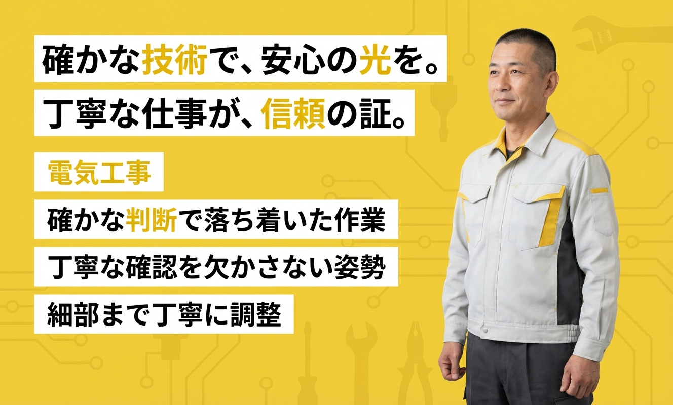 電気の工事屋さんは、エアコン、アンテナ、コンセント、家電取付など、多岐にわたるサービスを提供しています。数多くの施工実績があり、国家資格保有者が必ず施工いたしますので、安心してお任せできます。