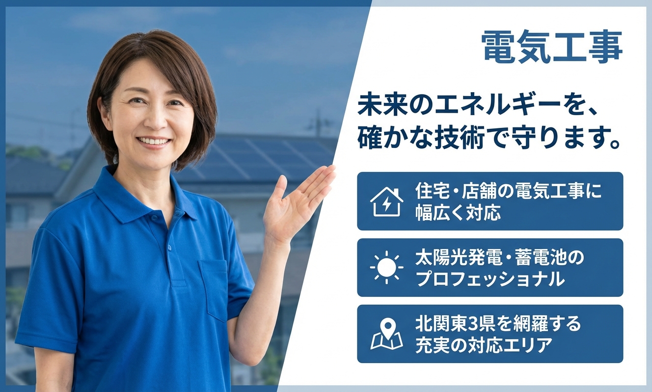株式会社イマデンは、一般住宅の細かな電気工事から、法人の店舗・オフィス、さらには太陽光発電システムといった大規模な設置工事まで、非常に多岐にわたる実績を持つ企業です。埼玉県を中心に北関東エリアを広くカバーしており、次世代エネルギー設備(蓄電池・LED等)の導入相談にも応じるなど、時代のニーズに合わせた高い技術力が魅力。電気のトラブル解決だけでなく、より快適な住環境づくりをトータルで任せられる信頼の厚い業者といえます。