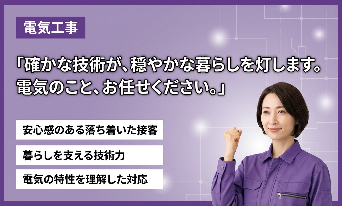 家庭の電気工事全般に対応してくれる事業者です。第二電気工事士などの国家資格を有する職人による施工で安心感があります。地域密着型で完全自社施工なので、余計な費用もかからず、低価格での施工を実現しています。堺市を中心とした出張対応エリア内であれば、問い合わせのタイミングによっては30分で来てくれるというほど、常に最速最短での対応が評判です。照明の取り付けなどの気軽な依頼から、配線工事などの専門的な施工まで、幅広く対応してくれる事業者です。