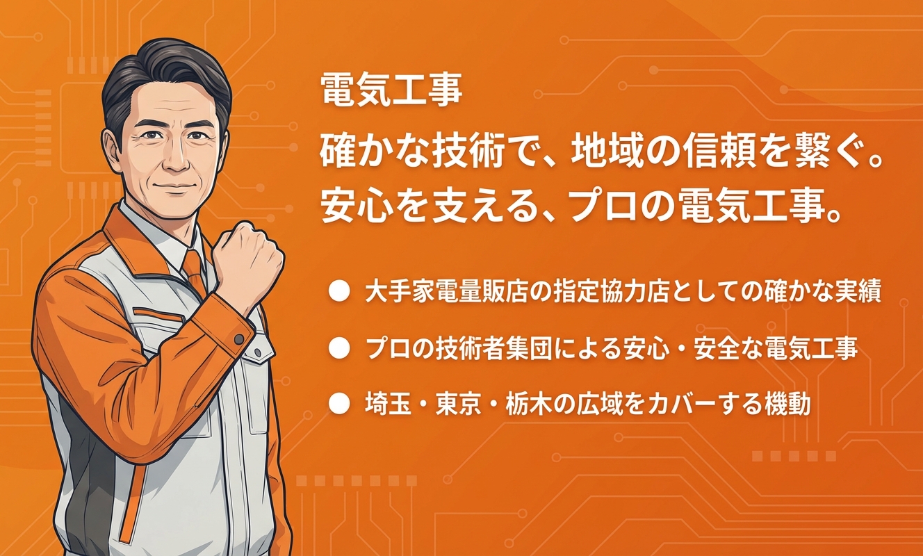 西神サービスは、大手量販店からの信頼も厚い、地域密着型の電気工事専門業者です。特にエアコン設置に関しては、埼玉県知事登録の電気工事業者として、法令遵守に基づいた責任ある施工を行っている点が大きな特徴です。対応エリアが埼玉県を中心に、東京都や栃木県までと広く、急な依頼や特殊な設置環境でも、豊富な知識を持つプロ集団が柔軟に対応してくれるため、安心して施工を任せられる一社と言えるでしょう。