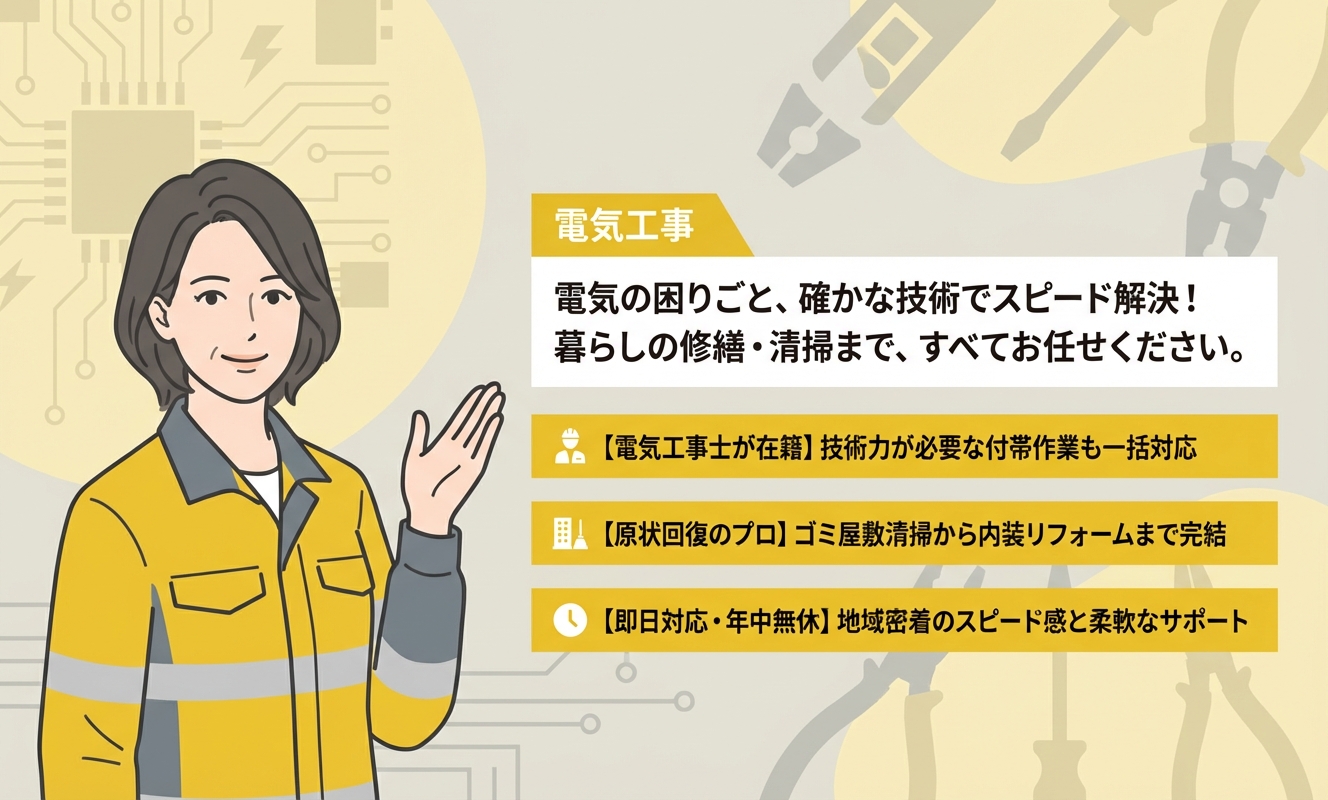 【電気工事士が在籍】技術力が必要な付帯作業も一括対応