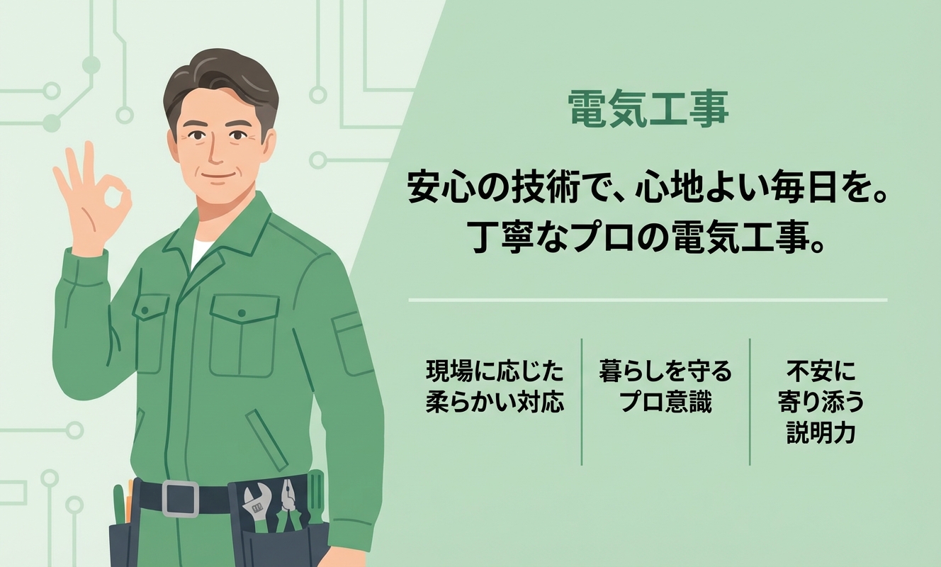 家庭のエアコン工事を行っています。取り外し3000円から、取り付け9000円からと低価格ながら、高い技術力には自信を持っています。全スタッフが、電気工事士の資格を持ち、難しい施工にも対応してくれます。仕上がりにもこだわりがあり、ホームページには、数多くの施工事例が写真付きで載っており、仕上がりや、スタッフの方の雰囲気、作業風景を見ることができて安心感があります。支払いは、クレジットカードだけでなく、各種電子マネーにも対応しています。
