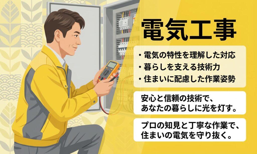 照明設置・修理サービスです。家庭やオフィスの照明環境を整え、快適で明るい空間を提供します。プロの技術で安全かつ美しい照明設置を実現。新規設置や交換、故障対応もお任せください。ご依頼の際には、信頼できる業者を選び事前に見積もりを取得し、サービス内容を確認することが重要です。
