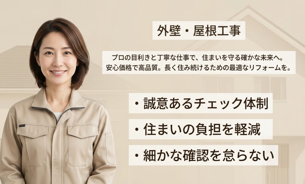 施工後は見た目が大きく変わり、家全体の印象が明るくなりました。品質を落とさない格安施工という言葉に嘘はなく、期待以上の仕上がりでした。