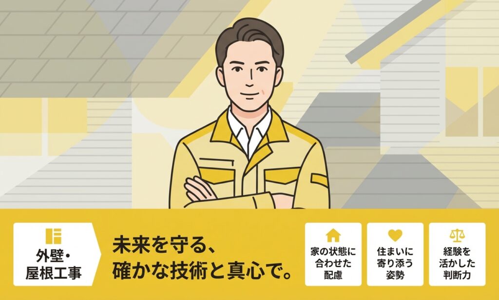 見積もりの段階で気になる部分を伝えると、代表さんが一緒に家の周りを回りながら「ここは補修しておいた方が安心です」と具体的に教えてくれました。塗装中も、塗り終えた箇所を確認する時間を取ってくれたので、色味やツヤをその都度チェックできて安心でした。