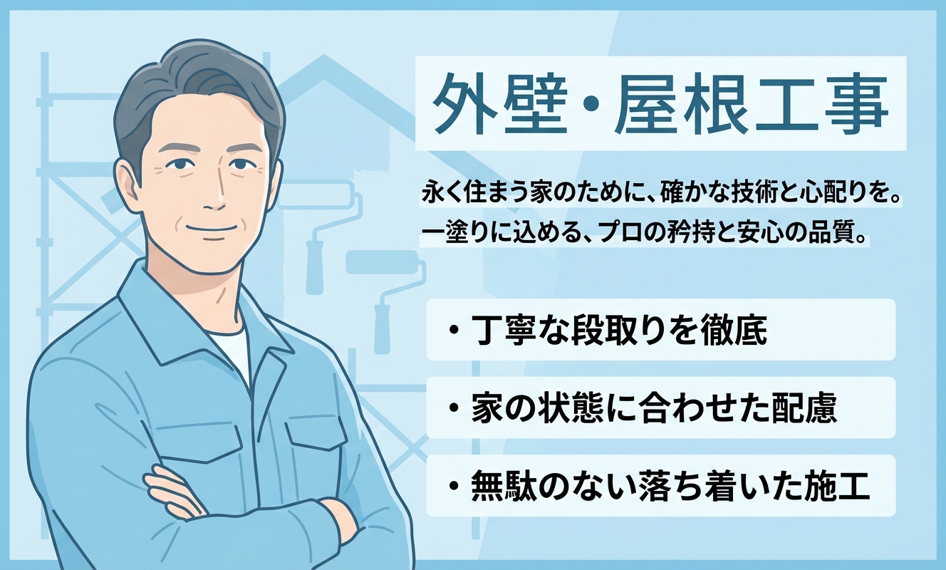 森塗装工芸は、大阪府をはじめとする関西一円で外壁や屋根の塗装、防水工事などを手がけている建物リフォーム専門業者です。戸建て住宅から店舗、マンションまで幅広く対応し、美観と耐久性の両立を実現しています。