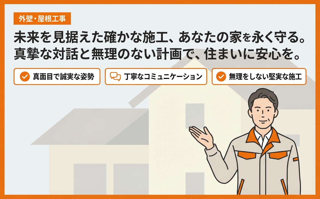 株式会社福島建築は、愛媛県で外壁塗装や屋根塗装を中心に、防水工事や外構・エクステリア工事、屋根修理まで幅広く対応しています。住宅の美観や耐久性を向上させるために、施工の質にこだわり、丁寧な工事を提供しています。外壁や屋根の塗装は、見た目の印象だけでなく、建物の寿命を左右する重要なメンテナンスです。紫外線や雨風の影響を受けやすい部分だからこそ、適切な塗料選びと確かな技術が求められます。福島建築では、それぞれの住宅に最適な施工方法を提案し、長持ちする仕上がりを目指しています。また、ローンによる支払いにも対応しており、計画的な施工を検討しやすい点も特徴です。