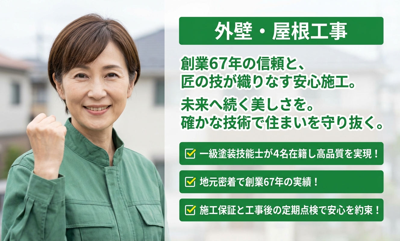 株式会社フクモト工業は、地元に根付いてお客様から厚い信頼を得ている専門業者です。一級塗装技能士が4名在籍しており、国家資格に基づいた確かな技術力が最大の強みです。また、すべてのプランに施工保証を提出し、工事後の定期的な点検・フォロー体制も充実。品質、技術、アフターフォローのすべてにおいて「安心」を提供してくれる業者です。