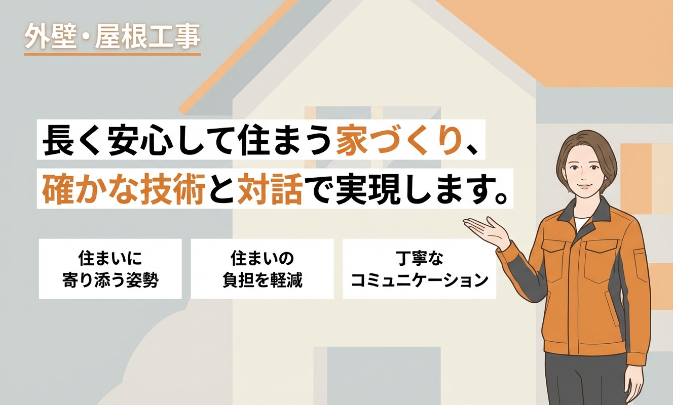 また、修繕工事にも対応しており、ひび割れや塗膜の劣化など、外壁の問題を適切に補修することが可能です。適切な塗料選びと施工技術によって、耐久性のある仕上がりが期待できます。