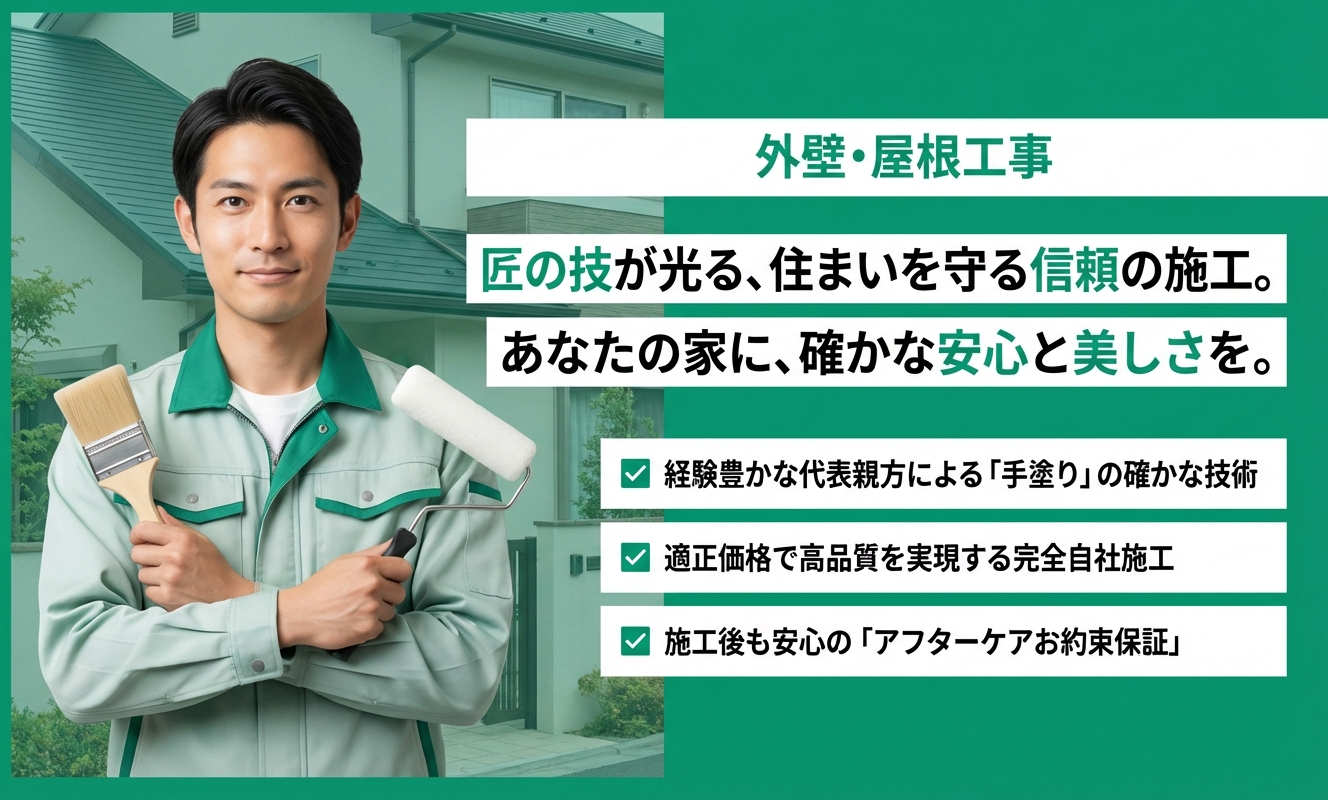 奥田塗装は、京都市西京区で40年以上の経験を持つ職人が率いる完全自社施工の塗装専門店です。中間マージンが発生しない適正価格と、長年の経験に基づいた確かな手塗り技術が最大の魅力と言えます。施工後の「アフターケアお約束保証」も提供しており、地域を大切にする真摯な姿勢からも、信頼して任せられる専門業者の一つです。