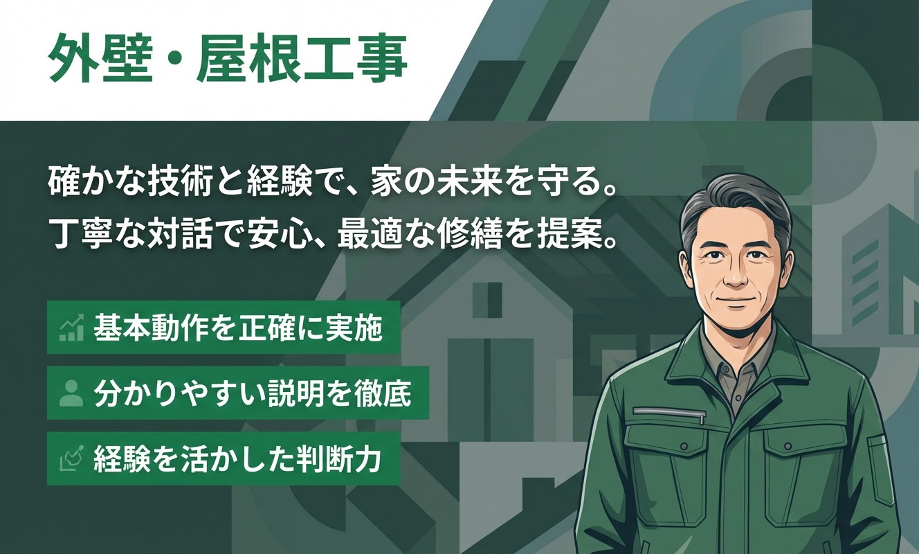 代表自ら現場に立ってくれるため、長年の経験に裏打ちされた安心感があります。点検も丁寧で、外壁の状態を写真で確認できるのがとても分かりやすかったです。