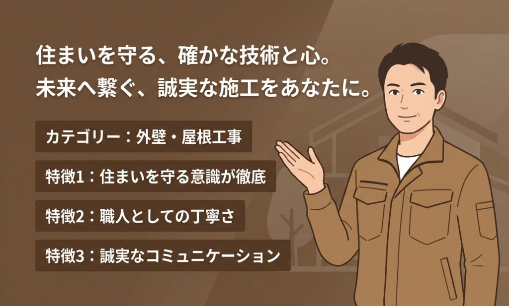 近年の強い雨が気になり、防水塗装を含めた外壁メンテを依頼。職人さんが劣化箇所を丁寧に診断し、下地補修から防水塗料での仕上げまで対応してくれました。仕上がり後は壁の手触りと水はけが違い、雨の日でも安心感があります。色味も落ち着いていて、外観の統一感にも満足しています。