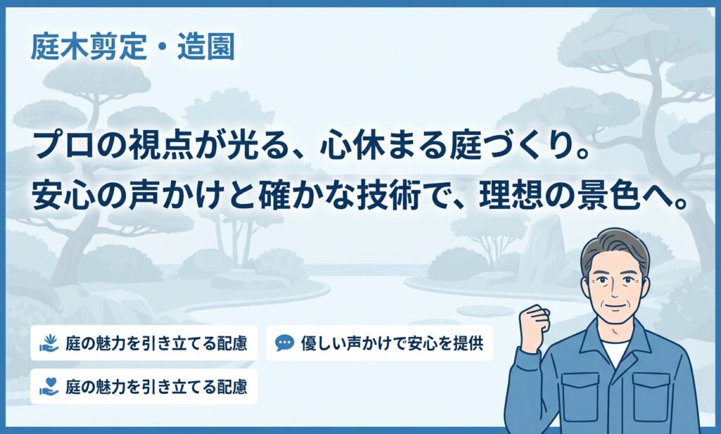 作業後の片付けまで手を抜かず、庭全体が明るくなりました。価格も納得の範囲内でした。