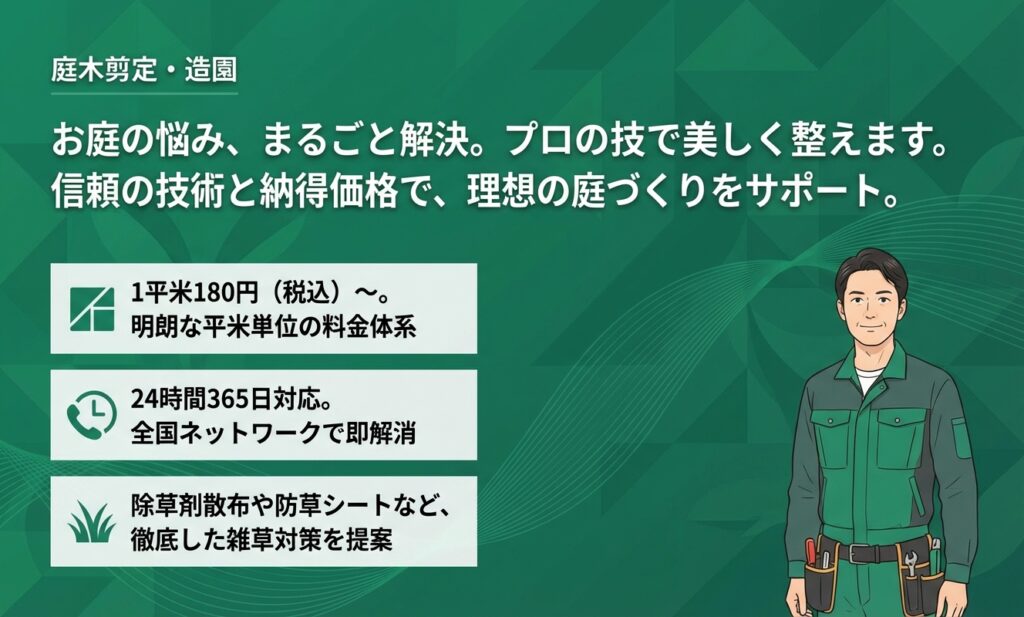 庭木の形状を整える剪定から、芝生の定期的なメンテナンス、肥料の施用まで幅広く対応します。プロの手による細やかなケアで、庭全体が生き生きと蘇り、四季折々の美しさを楽しむことができます。理想の庭空間を実現し、家全体の印象を向上させるために、最適なプランを提案してくれる業者を厳選してご紹介します。