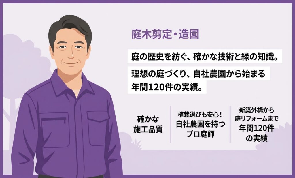 作業後の片付けまで手を抜かず、庭全体が明るくなりました。価格も納得の範囲内でした。