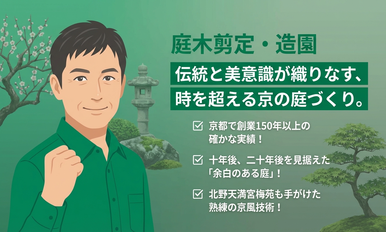 樋口造園の最大の魅力は、京都で150年以上続く老舗の歴史と、自然の成熟を見越した庭づくりの理念です。短期的な美しさだけでなく、「余白のある庭」として数十年先の完成形を見据える確かな技術は、貴重な伝統を継承した職人だからこそ成せる業。北野天満宮など有名施設での実績もあり、京都独特の雅な庭づくりを依頼したい方にとって、信頼できる専門業者と言えるでしょう。