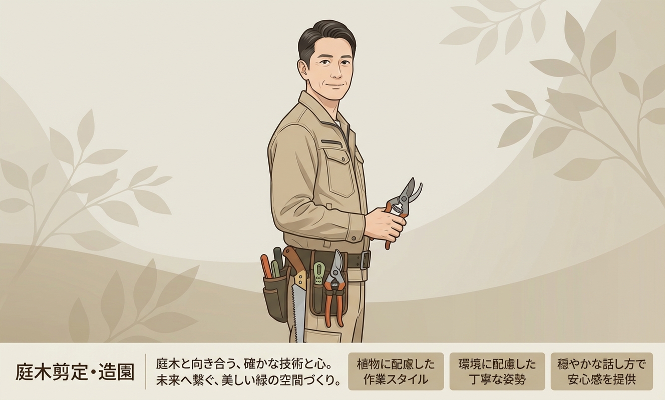 植木は葉の残し方、枝の切り方といった剪定・手入れの仕方で木の勢いが変わります。植木の細部にまで丁寧に手をくわえて、ただ綺麗に剪定するだけではなく、本来木が持つ力を最大限に発揮できるようなお手入れをしてくれます。丁寧で密接なコミュニケーションでお客様が何を求めているかをしっかりと確認しながら、 ご要望に沿った「木が元気になる」ご提案をしてくれる業者です。