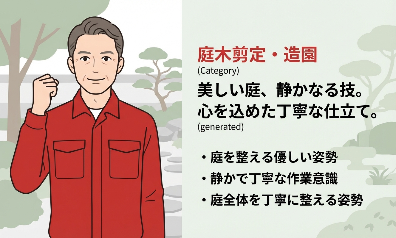 庭木1本から全国どこでも管理育成してくれます。剪定作業も、ただ単に剪定するだけではなく、その庭それぞれの空間にあった手入れをしてくれる会社です。お客様の意見を第一に作業することがモットーです。樹木の害虫対策のために薬散駆除にも対応しています。