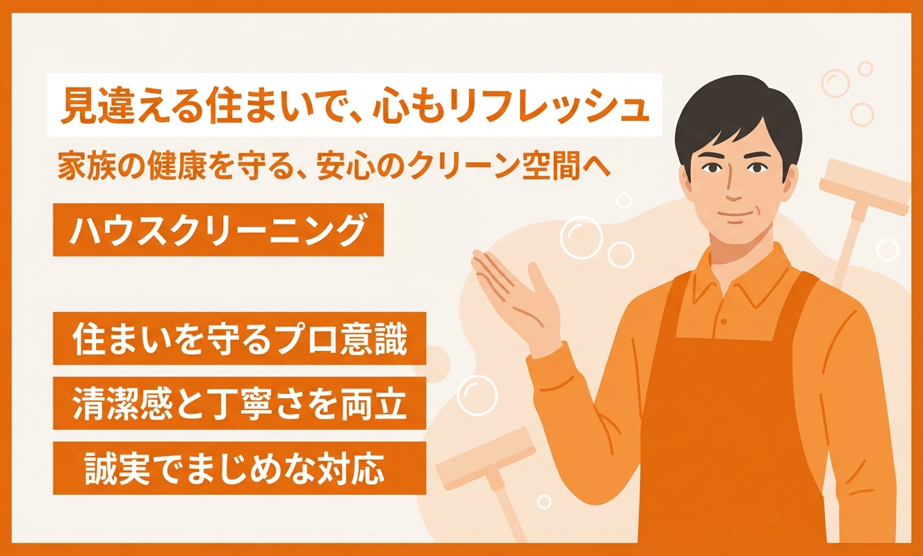 働くママさんや、ご高齢の方など、お掃除でお困りの方をお手伝いいたします。高齢者・障害者世帯や子育て世帯からのご依頼は10%引きのお値段で承りますので、どうぞお気軽にお問い合わせください。