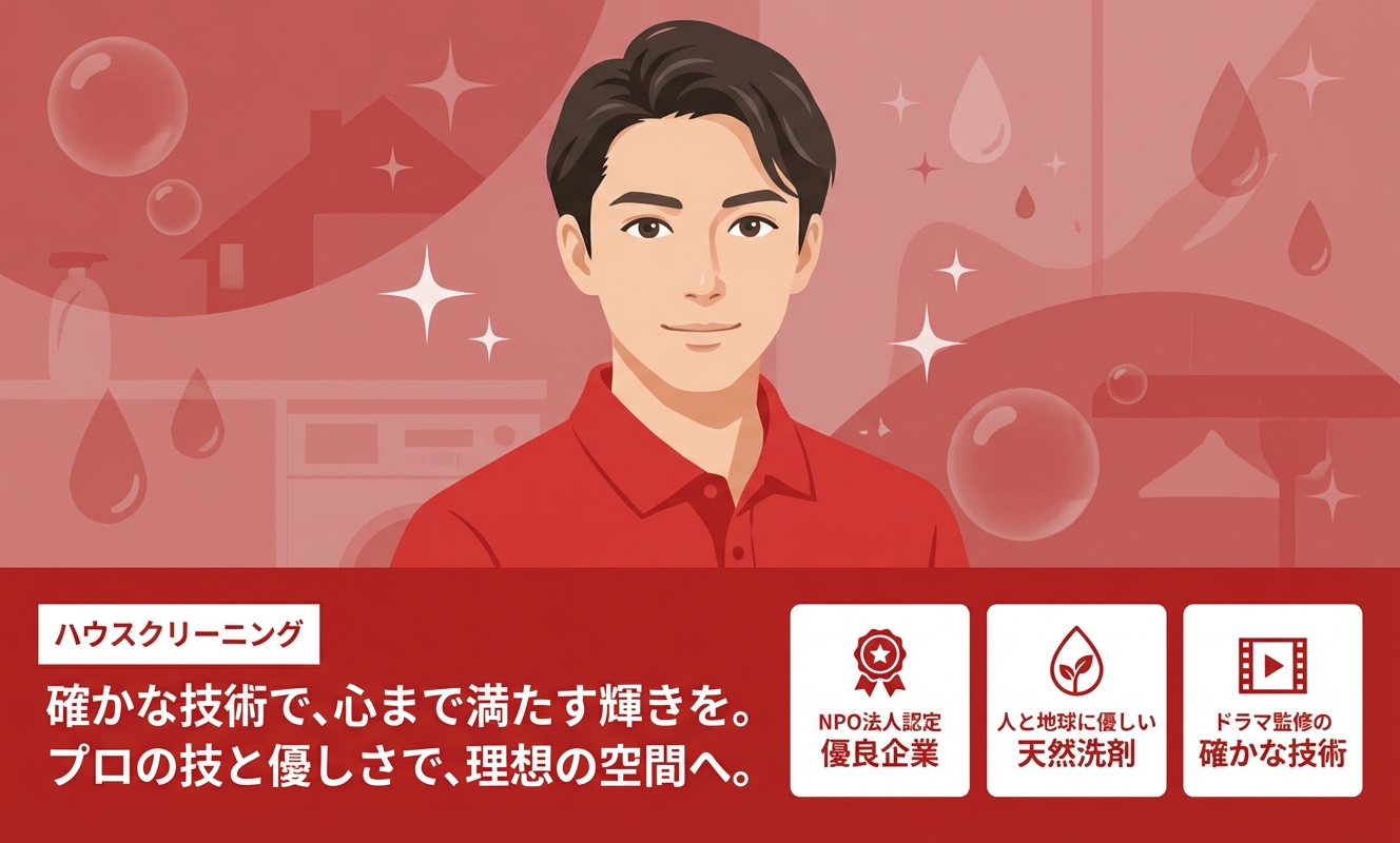ハピネスクリーンは、NPO法人日本ハウスクリーニング協会認定の優良企業であり、代表者がドラマの清掃シーンを監修するなど、その技術力には確かな裏付けがあります。人や環境に配慮した天然植物洗剤を中心に使用している点が大きな特徴で、小さなお子様がいるご家庭でも安心して依頼できます。また、損害保険にも加入しており、年中無休でお見積もり無料と、ユーザーが安心して利用できる体制が整っています。