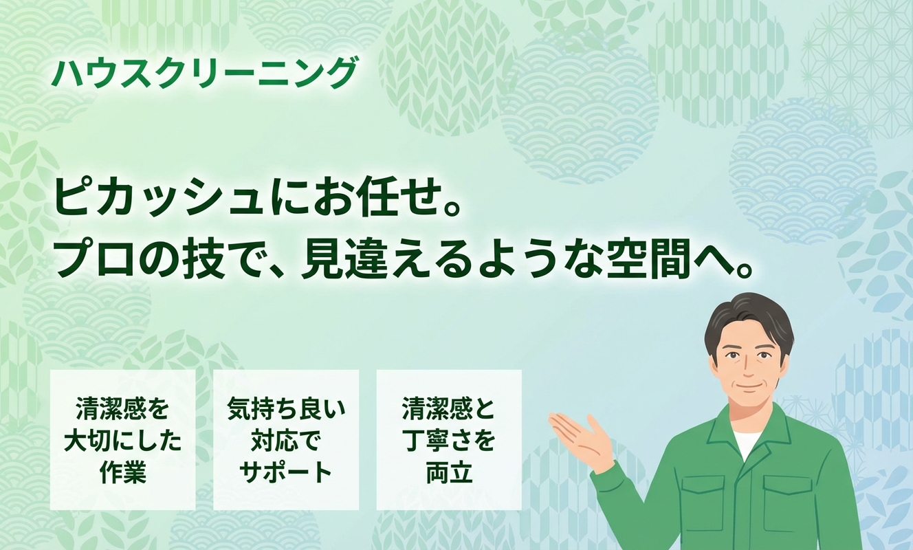ピカッシュは、東京都の中央区・足立区に拠点をもつハウスクリーニング業者さんです。エアコンクリーニングでは、分解と高圧噴射で徹底的な洗浄を行い、カビやニオイを除去してくれます。キッチンパックでは、コンロまわりの焦げ付きや油汚れ、シンクのカビや水アカなどを、全部まとめてクリーニングしてもらえます。洗面台・浴室・トイレの水回り3点セットでは、お得な価格で水回りがキレイになりますよ。