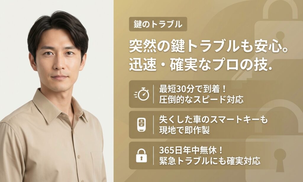 玄関・車・金庫など幅広い鍵トラブルに対応