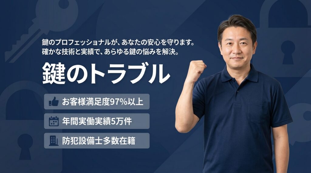 依頼後すぐに来てくれて、慎重に作業を進めてくれました。壊すことなく開けてくれたのは技術力の高さを感じました。費用も無理のない範囲で収まり、丁寧な説明も好印象でした。