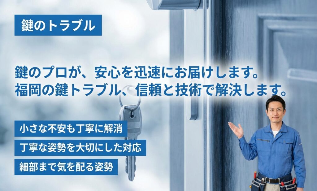 問い合わせたところ、対応可能とのことで依頼。開錠に少し時間はかかりましたが、破壊せず丁寧に対応してくれました。