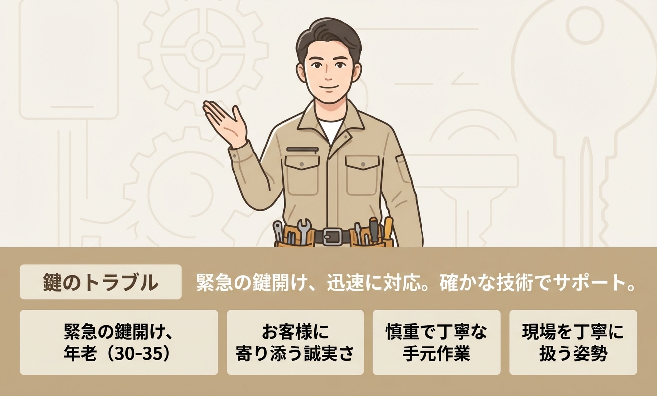 店舗 9:00~19:00 (日曜・祝祭日休み)トラブル対応は、24時間行っております