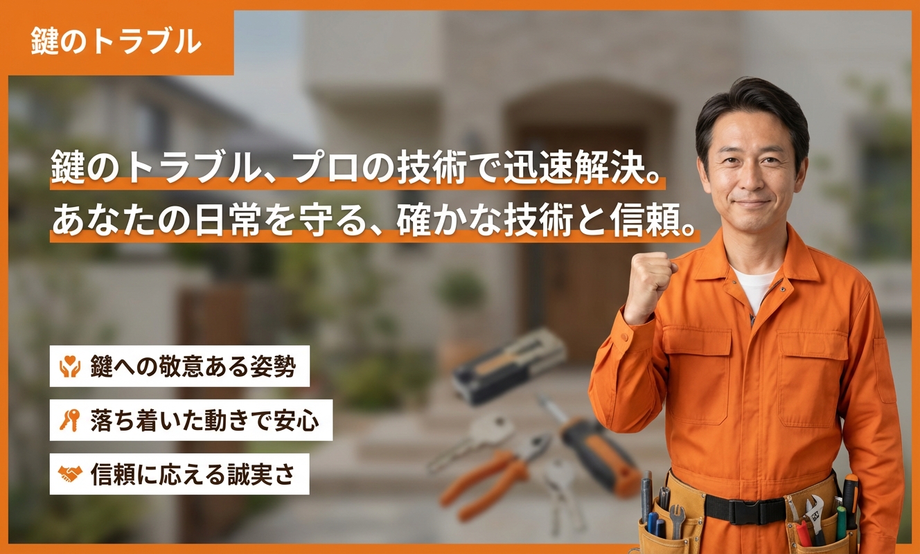 鍵ドットコムは、出張鍵屋による専門サービスです。鍵の紛失や故障であれば、住宅やオフィスの鍵はもちろん、車のイモビライザーやスマートキーについても、現場でトラブルを解決してもらうことが可能です。また、金庫の鍵に関しても、ダイヤル式・シリンダー式・テンキー式・指紋認証など、さまざまな種類の鍵を取り扱っています。出張エリアには、関東・東海地方を中心として、大阪・広島・福岡も含まれますので、エリア内にお住まいの方は、ご依頼を検討されてみてはいかがでしょうか。