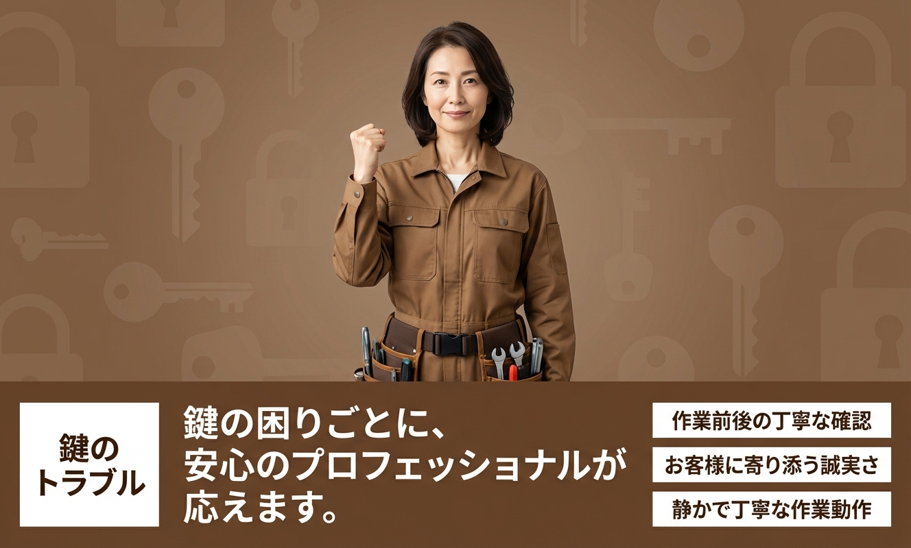 カギショウ・ワークスは全てに”安心”をお約束します。料金は明確化し、強引な売り込みなどは一切おこなっていません。アフターサービスも充実しており保証証の発行も行っています。お客様の事を第一に考えたサービス・接客を心がけています。