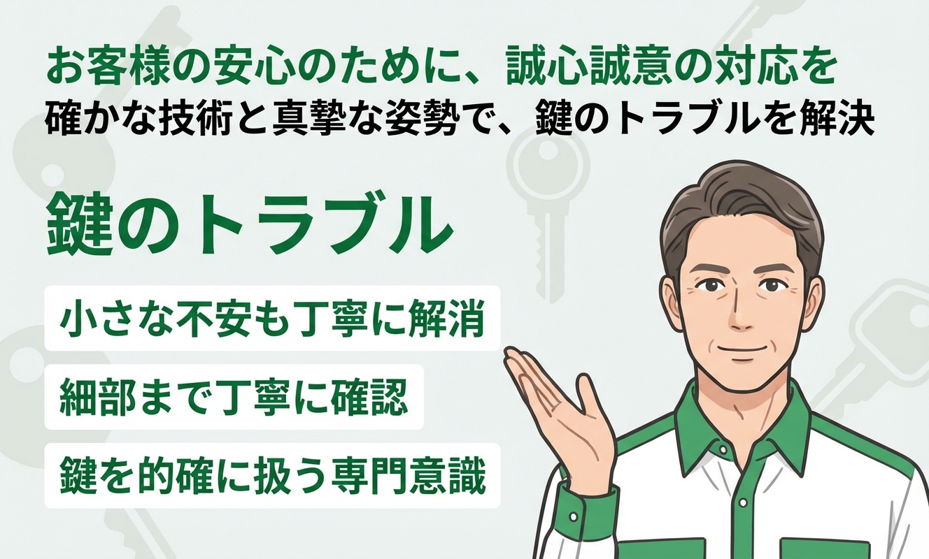 作成後の動作確認もその場でしてくれて、開閉もスムーズ。加工技術の高さを感じました。全体的に親切な対応で安心感がありました。
