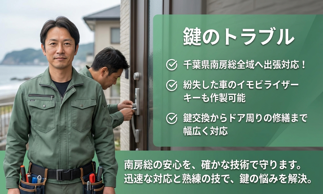 木更津ロックサービスは、千葉県南房総地域に根差し、地域住民からの厚い信頼を誇る専門業者です。住宅の鍵から、高度な技術が必要な車のイモビライザーキーの作製まで、対応範囲の広さが最大の魅力です。地元の知識と確かな技術で、鍵のトラブルを総合的に解決してくれる安心の事業者です。