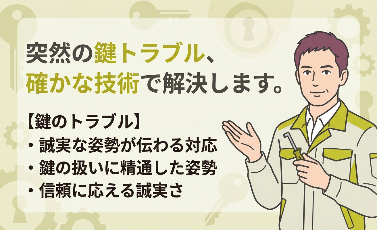 作業自体は早く、10分ほどで開けてもらえて助かりました。