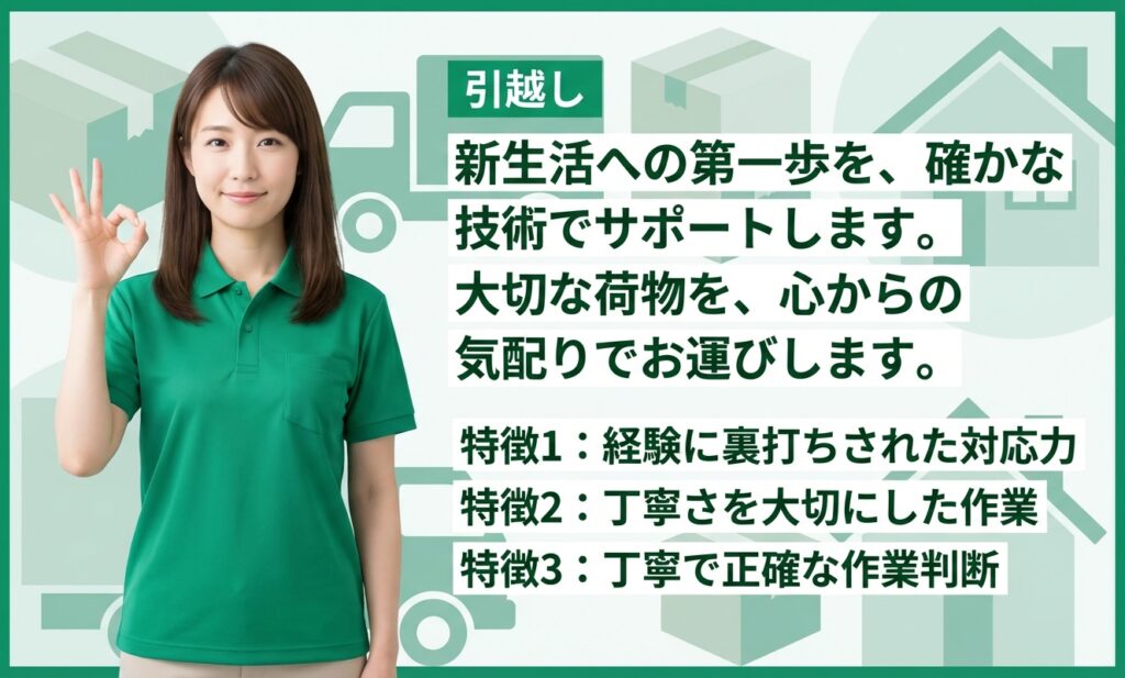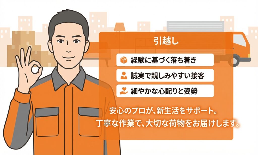 経験5年以上のスタッフが安心と笑顔を運び、お客様の新生活をサポートいたします。