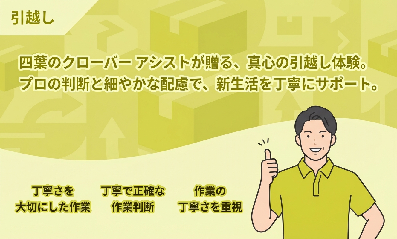 四葉のクローバー アシストは沖縄県糸満市を拠点とし、沖縄本島を中心に、離島や県外への転居にも対応する引越しサービスを提供している事業者です。電話での相談受付時間は8:00〜18:00で、休日を設けずに運営しているため、時期や曜日を問わず問い合わせが可能です。沖縄県内で業者を探す際、移動先を離島や県外まで想定している場合におすすめの業者です。