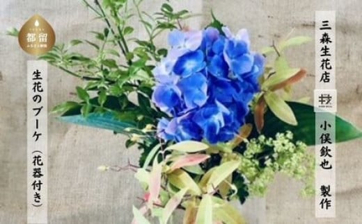 山梨県都留市の「生花のブーケ(花器付き)」は、市内の畑で育てられた野花を中心に束ねた一点物の作品です。老舗生花店の匠の技と、都留市の自然環境が掛け合わさることで、室内にいながら野の風景を感じられる一束が生まれています。