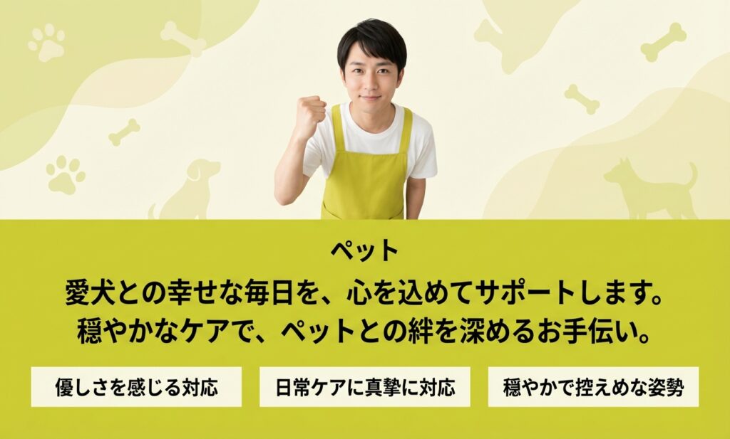 出張トレーニングで愛犬の問題行動を改善に導きます。対象エリアは世田谷区、目黒区、渋谷区、港区、大田区、品川区、千代田区、杉並区、練馬区、新宿区、川崎市、横浜市などです。犬・猫のシッターも受け付けます。