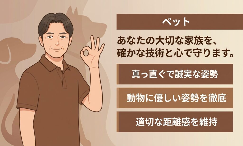 問題行動の原因を特定し、それに応じたトレーニング方法を提案します。ポジティブな強化を重視し、段階的に改善します。