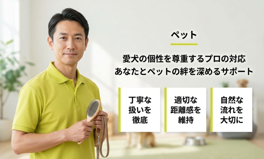 ペットの種類や毛の状態によりますが、通常1〜2時間程度です。初回の場合は少し長くなることがあります。