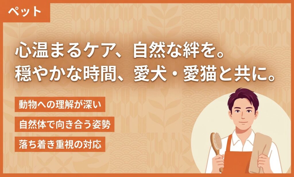ペットの種類や毛の状態によりますが、通常1〜2時間程度です。初回の場合は少し長くなることがあります。