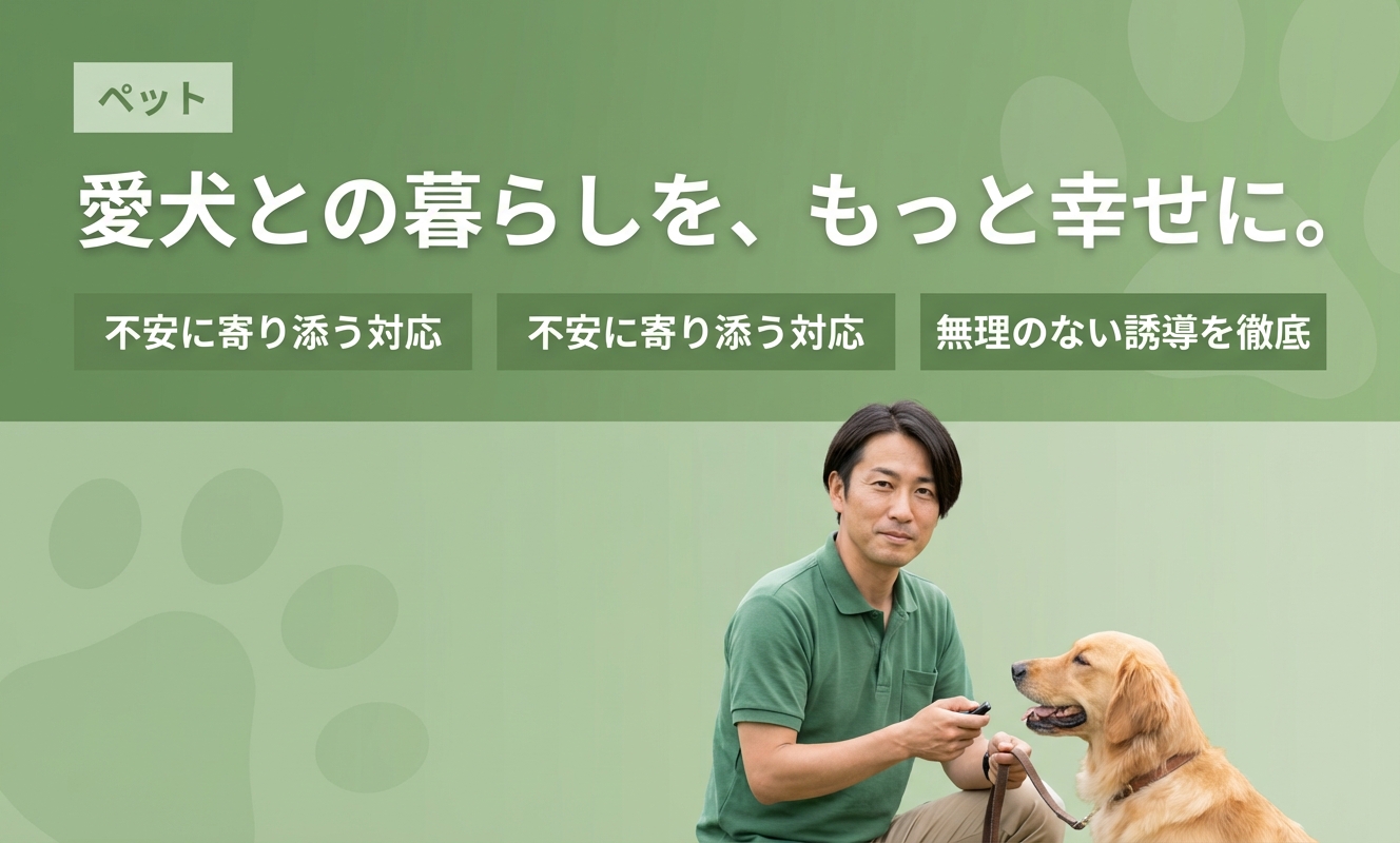グッドわんドッグトレーニングでは、犬のしつけ、トレーニングをしています。愛犬のしつけ、トレーニングをするには飼い主と愛犬のお互いに信頼することから始まりますが、一緒に生活するため愛犬にしつけをすることが大切です。人が来ると吠えるなどの行動についての「問題行動改善レッスン」、ドッグカフェに連れて行きたい、など飼い主の要望に応える「プライベートレッスン」、社会化トレーニングなどの「子犬レッスン」など様々なレッスンを用意しています。出張トレーニング、オンラインレッスン、預かりトレーニングと飼い主の都合に合わせたレッスンを選べます。また、自宅でのペットシッターのサービスも提供しています。